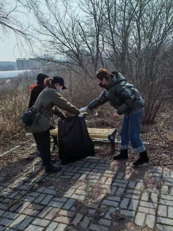 在捡拾垃圾过程中,清扫工具借不上力,大家纷纷动手捡拾,将楼梯处、草丛中、树枝上遗留的塑料袋、饮料瓶、烟盒等垃圾进行清理,集中收到随身携带的垃圾袋中,充分发扬不怕苦、不怕累、不怕脏的精神。